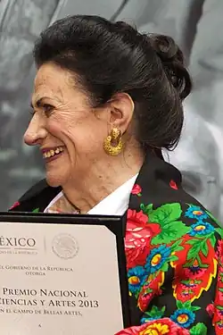Recognitions for her work and career include an honorary mention at the Exposición de Escultura Mexicana Contemporáneo in 1960, Instituto de Arte de México Prize and the first prize of the III Biennal de Escultura in 1967, first place in sculpture at the Concurso para Monumento in Tijuana in 1973,[5] and the gold medal at the Academia Italia delle Arti e del Lavoro in Italy in 1980.[3] She was accepted as a member of the Salón de la Plástica Mexicana[9] and in 1974 became the first woman to be accepted to the Academia de Artes.[1] In 2008, she was honored at an event at the Soumaya Museum, sponsored by the Fundación del Centro Histórico de la Ciudad de México[4] and in 2010, CONACULTA and the Instituto Nacional de Bellas Artes honored her at the Palacio de Bellas Artes.[10]