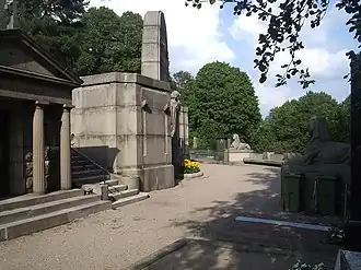 Östra kyrkogården (English: Eastern cemetery) is a cemetery in Gothenburg, Sweden. It is located in the parish of Örgryte, in the Diocese of Gothenburg. With an area of 25.3 hectares (63 acres), and nearly 18,000 graves, it is the third largest graveyard in the city. Including the urns, it is estimated to be the resting place of 150,000 people.[1] The cemetery houses the graves of many notable citizens of Gothenburg, whose work and donations helped shape the city.[2] Many of their tombstones and monuments are stately works of art.