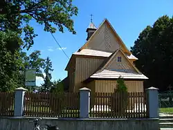 • Former Greek Catholic church of the Holy Spirit St. Dymitra Martyr, erected in 1701. Rebuilt in 1923 (including a new women's gallery with a vestibule, and the sacristy was added to the sanctuary). From 1947, unused. In the 1960s, changed to a warehouse. In 1987, damaged by a fire. Renovations with the restoration of the original appearance of the western part were carried out in 1990–1994. The object belongs to a group of traditional wooden churches of the Eastern Church. Its spatial layout - tripartite plan and single-body shape clearly refers to the oldest wooden churches from the 16th-17th century.[3]