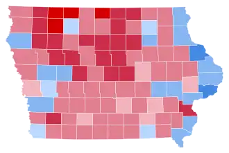 | Iowa | 1,664 | 44.86% | 1,978 | 53.33% | 50 | 1.35% | 17 | 0.46% | -314 | -8.47% | 3,709 | ||
