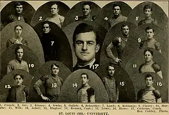 9. ^ "New Formations to Be Tried by St. L. U. in Game To-Day". St. Louis Globe-Democrat. St. Louis, Missouri. October 27, 1906. p. 15. Retrieved January 18, 2023 – via Newspapers.com Open access icon.