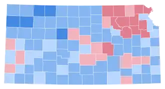 As of the 2024 presidential election, this is the last election in which Osborne County voted for a Democratic presidential candidate. Johnson County would not vote for a Democrat for President again until Joe Biden won it in 2020.[1] The 1916 election was the second and last time that Kansas has voted more Democratic than the nation (the first being the 1896 election), the last time it voted more Democratic than New Mexico or Oregon, and the only time until 2020 that it voted more Democratic than neighboring Missouri.