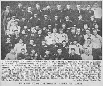 The 1930 California Golden Bears football team was an American football team that represented the University of California, Berkeley during the 1930 college football season. Under head coach Nibs Price, the team compiled an overall record of 4–5 and 1–4 in conference.[1][2]