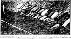 In late April efforts were made to protect players from colliding with the concrete retaining wall on the number 2 field by placing sacks filled with sand bags on the lower part of it. The wall had been built soon before using relief workers during the depression.