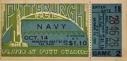 September 30, 1933 ticket stub from Pitt vs. Washington & Jefferson game