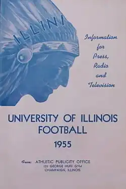 The 1955 Illinois Fighting Illini football team was an American football team that represented the University of Illinois as a member of the Big Ten Conference during the 1955 Big Ten season. In their 14th year under head coach Ray Eliot, the Fighting Illini compiled a 5–3–1 record (3–3–1 in conference games), finished in fifth place in the Big Ten, and outscored opponents by a total of 149 to 114.[1]