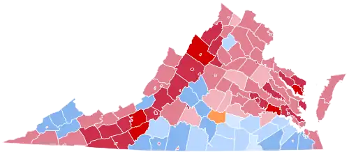 This limited electorate allowed Virginian politics to be controlled for four decades by the Byrd Organization, as progressive "antiorganization" factions were rendered impotent by the inability of almost all their potential electorate to vote.[3] Historical fusion with the "Readjuster" Democrats,[4] defection of substantial proportions of the Northeast-aligned white electorate of the Shenandoah Valley and Southwest Virginia over free silver,[5] and an early move towards a "lily white" Jim Crow party[4] meant Republicans retained a small but permanent number of legislative seats and local offices in the western part of the state.[6]