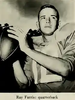 Quarterback Ray Farris completed 71 of 159 passes (44.7%) for 875 yards with two touchdowns, 11 interceptions, and an 81.2 quarterback rating. His 71 completions and 159 attempts both broke North Carolina single-season records.[21] Farris also tallied 153 rushing yards to lead the team with 1,028 yards of total offense.[20] He ranked second in the ACC, behind Roman Gabriel, in total offense.[22] Farris closed his playing career in 1961 as the third player in ACC history to complete two years with 1,000 yards of total offense, the other two being Norm Snead and Roman Gabriel.[23]