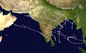 The 1962 North Indian Ocean cyclone season had no official bounds, but cyclones tend to form between April and December. These dates conventionally delimit the period of each year when most tropical cyclones form in the northern Indian Ocean. There are two main seas in the North Indian Ocean—the Bay of Bengal to the east of the Indian subcontinent and the Arabian Sea to the west of India. The official Regional Specialized Meteorological Centre in this basin is the India Meteorological Department (IMD), while the Joint Typhoon Warning Center releases unofficial advisories. An average of four to six storms form in the North Indian Ocean every season with peaks in May and November.[1] The IMD includes cyclones occurring between the meridians 45°E and 100°E in the season.[2]