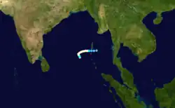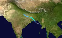 Very Severe Cyclonic Storm Twelve developed on November 26. It was the strongest tropical cyclone of the season, peaking with winds of 140 km/h (85 mph). The system dissipated on November 29.[17] The storm moved from east to west and made a Tropical Storm-equivalent landfall on eastern India.