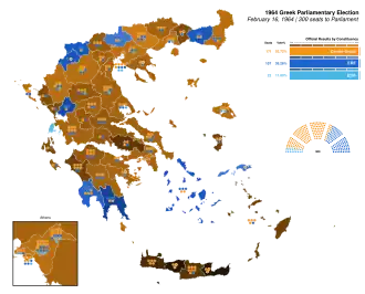 Parliamentary elections were held in Greece on 16 February 1964.[1] They resulted in a clear victory for Georgios Papandreou and his Center Union (EK). Papandreou subsequently formed the 37th government since the end of World War II.[2]