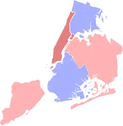 Lindsay carried Manhattan, Queens, and traditionally Republican Staten Island, while Beame carried The Bronx and his home borough of Brooklyn, both of which he had also won in the Democratic primary. However, while Beame had also carried Queens in the primary, he lost it to Lindsay in the general election.[14]