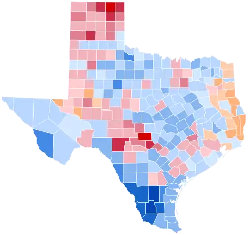 Humphrey won 13 out of the 23 congressional districts in Texas, Nixon won 9, including six held by Democrats, and Wallace won 1, which was held by a Democrat.[12]