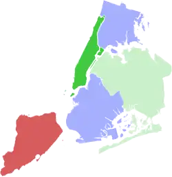 | Manhattan | The Bronx | Brooklyn | Queens | Staten Island | Total | ||