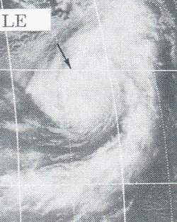 On October 18, a vortex in the Intertropical Convergence Zone was determined to be a tropical storm through the use of satellite pictures.[4] Kathleen was a tropical storm for only eighteen hours before weakening into a tropical depression and recurving to the northeast.[1] The tropical cyclone dissipated on October 19 while out to sea west of Puerto Vallarta. No deaths or damages were reported.[4]