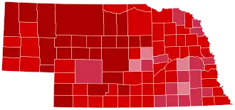 In a state that would reflect McGovern's national results,[4][5] the Democratic nominee did not win a single county in Nebraska. Out of Nixon's three campaigns, this was the only one in which Nebraska was not his strongest state, although he did outperform his past two performances here in popular vote percentage. Instead, Nebraska was his seventh strongest state after Mississippi, Georgia, Oklahoma, Alabama, Florida, and South Carolina.