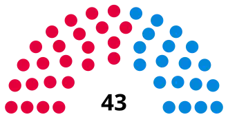 Party Seats Gains Losses Net gain/loss Seats % Votes % Votes +/−