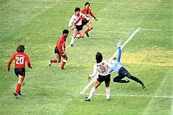 Fltr: the first and second goals of River Plate, scored by Jorge Villazán and Juan G. Funes, respectively