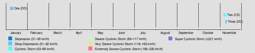 1. ^ "Frequently Asked Questions: What is the annual frequency of Cyclones over the Indian Seas? What is its intra-annual variation?". India Meteorological Department. 2012. Archived from the original on May 21, 2015. Retrieved June 8, 2012.