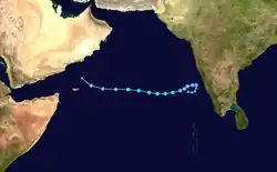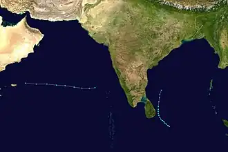 From November 9 to the 11th, Tropical Storm Three existed over the open Arabian Sea, dissipating due to vertical shear.
