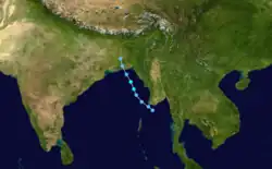 A tropical disturbance in the eastern Bay of Bengal developed into a tropical depression on October 17. It moved northwestward, briefly becoming a tropical storm before upper-level winds weakened it. The storm hit Bangladesh as a tropical depression on the 19th, but still managed to cause strong storm surge and flooding amounting to 1500 casualties.