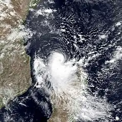 During the season, the Météo-France office (MFR) on Réunion island issued warnings in tropical cyclones within the basin. Using satellite imagery from National Oceanic and Atmospheric Administration, the agency estimated intensity through the Dvorak technique, and warned on tropical cyclones in the region from the coast of Africa to 90° E, south of the equator.[1] The Joint Typhoon Warning Center (JTWC), which is a joint United States Navy – United States Air Force task force, also issued tropical cyclone warnings for the southwestern Indian Ocean.[2] The season's nine named storms and five tropical cyclones – a storm attaining maximum sustained winds of at least 120 km/h (75 mph) – is the same as the long term average for the basin.[3]