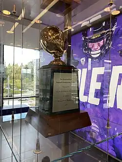 1991 FWAA Grantland Rice National Championship Trophy on display inside Husky Stadium