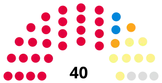 Party Seats Gains Losses Net gain/loss Seats % Votes % Votes +/−
