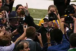 LSU fans celebrate their team's victory by holding up copies of The Times-Picayune newspaper of the next day.