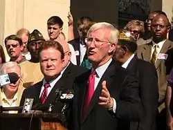 Barbour scheduled the special election for November 4, 2008.[4] Mississippi Attorney General Jim Hood, a member of the Democratic Party, issued a non-binding opinion that the election must be held within one hundred days of Lott's resignation (no later than March 30, 2008), and sued Barbour in Hinds County Circuit Court, arguing that Barbour had 10 days to set a special election within 90 days (no later than March 29, 2008).[7][8] Hood argued the date of the special election to be March 11, the same day as Mississippi's presidential primary.[9] Governor Barbour claimed that the definition of "year" in the law in question is 365 days. Mississippi Secretary of State Eric Clark, the state's chief elections officer and a fellow Democrat, backed the governor's position.[10]