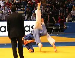 Varlam Liparteliani (GEO) winning his fight in the final of the team competition.