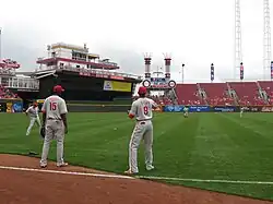 Some of the Phillies warming up for a Labor Day game against the Cincinnati Reds.