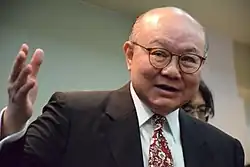On 12 January 2017, Carrie Lam resigned from her Chief Secretary post (having at some point previously renounced her British citizenship, which would have excluded her from running) and announced her plan to run for Chief Executive if her resignation was approved.[47] In a closed-door meeting, she laid out an eight-point "achievable new vision" for Hong Kong and told participants that God had called on her to run. On 16 January, the two Secretaries' resignations were simultaneously approved by the central government. Some pro-Beijing politicians saw this as a sign that Lam was the central government's favoured candidate, as Tsang had resigned a full month before Lam.[48] Lam officially declared her candidacy on the same day, promising good governance with greater transparency and "new blood" in her cabinet, at a press conference in which she was joined by Executive Councillor Bernard Chan, director of her campaign office.[48] The chairman's council of her campaign office included prominent figures, former Hong Kong Stock Exchange chairman Ronald Arculli among them.[49]