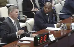 It was revealed that other countries had similar reports on UFOs, and that a number of them communicated with U.S. intelligence agencies, although Moultrie told lawmakers that they did want "potential adversaries to know exactly what we see or understand."[6] He also mentioned the need for cooperation with the Federal Aviation Administration as well as other government agencies.[9] Moultrie stated that most UFOs could be identified through "rigorous" analysis and investigation, but pointed out a number of incidents that defied explanation, such as a 2004 sighting where aircraft carrier pilots in the Pacific came across a hovering unidentified object that appeared to have rapidly descended tens of thousands of feet.[7][13][14]