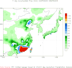 America NOAA 7 Day Rainfall Data for China Region(22 April 2024 to 28 April 2024)
