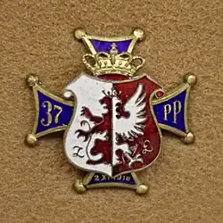 After the collapse of Austria-Hungary on 28 October 1918, the Polish Liquidation Committee was formed in Kraków to organize Polish military and administrative structures in Galicia.[1] On 1 November 1918, the Governing Council and Garrison Command were created in Przemyśl to begin organizing Polish military forces and administration. In the barracks of the former Austro-Hungarian 45th Infantry Regiment, scattered military units were gathered, forming the foundation for the 37th Infantry Regiment.[1] The first commander of the regiment was Lieutenant Leon Kazubski, who had been released from a local prison on 3 November 1918.[1] He became the commander of Polish forces and the garrison of Przemyśl on 5 November 1918.[2]