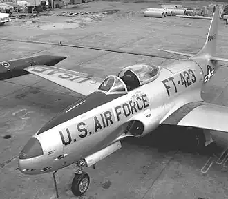 Little more than a year later the group was redesignated the 438th Fighter-Bomber Group and activated at Billy Mitchell Field, Wisconsin when the 438th Fighter-Bomber Wing replaced the 924th Reserve Training Wing there. The reserve mobilization for the Korean war, however, had left the Reserve without airplanes, and the unit did not receive aircraft until July 1952.[15] When it finally began to receive its planes, they were World War II era North American F-51 Mustangs, which would serve until the group's Lockheed F-80 Shooting Stars arrived.[8] Once more, the 2473d Air Force Reserve Training Center was responsible for the training of the 438th Wing and other units at the station.[16] Despite its designation as a fighter bomber unit, the group initially trained in the air defense role.[17]