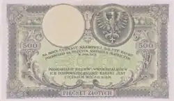 Once the złoty was reinstated in 1924, a 500-złoty note featuring an image of Tadeusz Kościuszko, dated 1919 and printed in advance in United Kingdom, was put into circulation. It was the highest-value note in circulation until the outbreak of World War II.