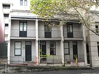 55–59 Harrington Street, The Rocks are heritage-listed serviced apartments and a former terrace house located at 55–59 Harrington Street, in the inner city Sydney suburb of The Rocks in the City of Sydney local government area of New South Wales, Australia. It was built from 1886. It is also known as Stafford Terrace; Stafford Apartments and 75 Harrington Street; Clocktower Development. The property is owned by Property NSW, an agency of the Government of New South Wales. It was added to the New South Wales State Heritage Register on 10 May 2002.[1]