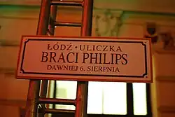 In autumn 2014, the Light Move Festival visited the courtyard on 6 Sierpnia Street for the first time (4th edition from October 10 to 12). A light arrangement named Philips Brothers Street was presented, and a light painting competition was organized by the Łódź Lux Pro Monumentis Foundation.[93] The event returned in 2015 (5th edition, from October 9 to 11)[94] and 2017 (7th edition, from September 29 to October 1).[95][96]