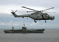 All RN Westland Lynx Flights were initially parented by 700L Naval Air Squadron from July 1977. This transferred to 702 Naval Air Squadron on its formation in January 1978.[11] These Flights were formed of a single Westland Lynx HAS.2 anti-submarine helicopter, these were later followed with the HAS.3 variant and then eventually the HMA.8. Personnel consisted of a Pilot and an Observer, one as Flight Commander, Chief Petty Officer Senior Maintenance Rating and six Rating technicians.[12]