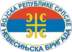 The 8th Motorized Brigade, also called the Nevesinjska Brigade, was one of the units of the Herzegovina Corps of the Army of Republika Srpska. The brigade was officially founded on 16 June 1992 at Čobanovo Polje in Podvelež. It was born from the 10th motorized brigade of the JNA.[3] The brigade was filled with fighters from the municipalities of Nevesinje and Mostar, as well as Serb volunteers from the Neretva valley . The brigade's zone of responsibility was located in the municipalities of Mostar, Konjic, Nevesinje, Stolac and served the defense of Eastern Herzegovina. The first commander was Novica Gušić, while his successor was Zoran Purković. During the Bosnian War, the brigade defended the city of Nevesinje and the western parts of Eastern Herzegovina and participated mostly during Operation Bura and in Operation Autumn '94. The brigade lost 476 soldiers during the war.[4]