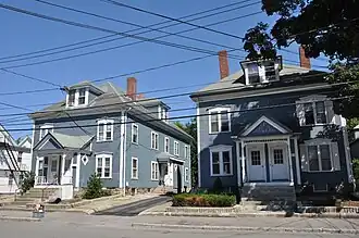 The Aaron Martin Houses are a pair of historic houses in Waltham, Massachusetts. Built between 1892 and 1900, these Colonial Revival houses have similar massing, with hip roofs and double-window hip dormers. Windows on their main facades are treated with pediments incised with floral decoration, and their porches have turned posts. They were built by Aaron Martin, a real estate speculator and Waltham Watch Company employee who lived in a more elaborate house on Moody Street.[2]