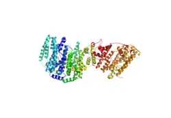 2XZ0 and 2XZ1 show the dramatic change in conformation of the enzyme when bound (2XZ1) and unbound (2XZ0). As a dimer, the fatty acid chain binds to a hydrophobic pocket at the interface of the two dimers,.[6] This central channel is mirrored by binding sites for the electron donors on either side.