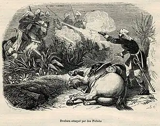 Dixon Denham defending against the Fulani pursuers during the retreat of the Bornu-Mandara army