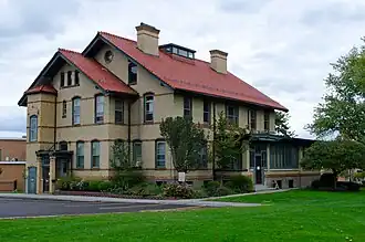 Adolph Lomb House is a historic home located at Pittsford in Monroe County, New York. It is a large 1+12-story building with a gable roof oriented to the facade. It was built in 1907 of poured concrete faced in brick. It was built as the focal point of a large farm / summer estate for Adolph Lomb, eldest son of Henry Lomb (1848–1908), one of the co-founders of the Rochester-based optical company Bausch and Lomb.[2]