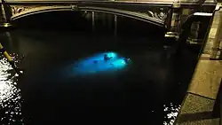 Agnete and the Merman is a group of bronze sculptures in Copenhagen, Denmark, located underwater in the Slotsholm Canal next to the Højbro Bridge. It has been referred to as one of the least-known works of art in Copenhagen.[1] The sculptures were made in 1992 by the Danish sculptor, photographer, and author, Suste Bonnen.[2] They portray a merman and his seven sons with outstretched arms, begging Agnete to return home.[3] Three other sculptures of merfolk are located in Copenhagen: the "Black Diamond Mermaid", a copy of Anne Marie Carl-Nielsen’s 1921 statue; a large (15-foot) granite mermaid[4] located on the port-of-call cruise ship dock in Copenhagen; and the famous Little Mermaid statue, located on the water’s edge along Langelinie promenade.
