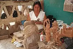 The Aguilar family are clay-making artisans from Ocotlán de Morelos, a rural town in the state of Oaxaca, Mexico. The town's clay production included only utilitarian items until Isaura Alcántara Díaz and her husband, Jesús Aguilar Revilla, expanded their wares into decorative figures and religious items.[1] The couple passed their craft down to their daughters Guillermina, Josefina, Irene, and Concepción, who have continued to innovate their own styles and techniques around subject matters related to the life and traditions in Oaxaca as well as iconic Mexican figures. The family craft and artistic recognition lives on through the children and grandchildren of these four women.