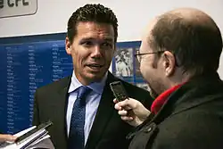 Alan Koch being interviewed after he was appointed as Whitecaps FC 2's head coach