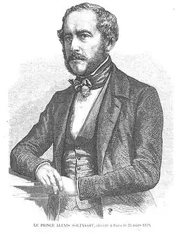Prince Aleksei Dmitrievich Saltykov (also known as Alexis Soltykoff; 1806–1859) was a Russian diplomat, artist and traveller in Iran and India. He was the grandson of Prince Nikolay Saltykov.